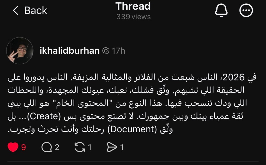 البعض يبحث عن عدد المتابعين، لكنه لا يبحث عن قيمة صانع المحتوى الحقيقية المتمثلة في شخصيته، وطريقة تفكيره، ومبادئه، وأخلاقه؛ وهل يتطور ويتحسن فعلاً؟